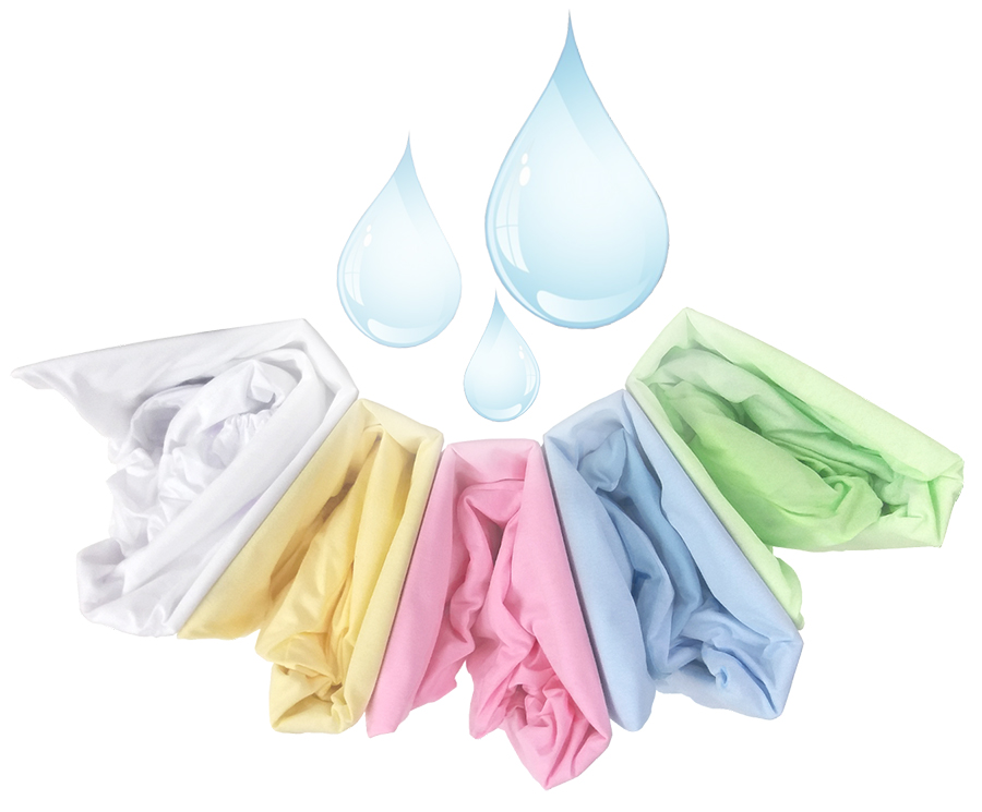 Powierzchnia spania prześcieradła wykonana jest z dzianiny podklejonej membraną, boki materaca osłonięte są zwykłą dzianiną obszytą w standardowy sposób jak w przypadku prześcieradeł frotte czy jersey.