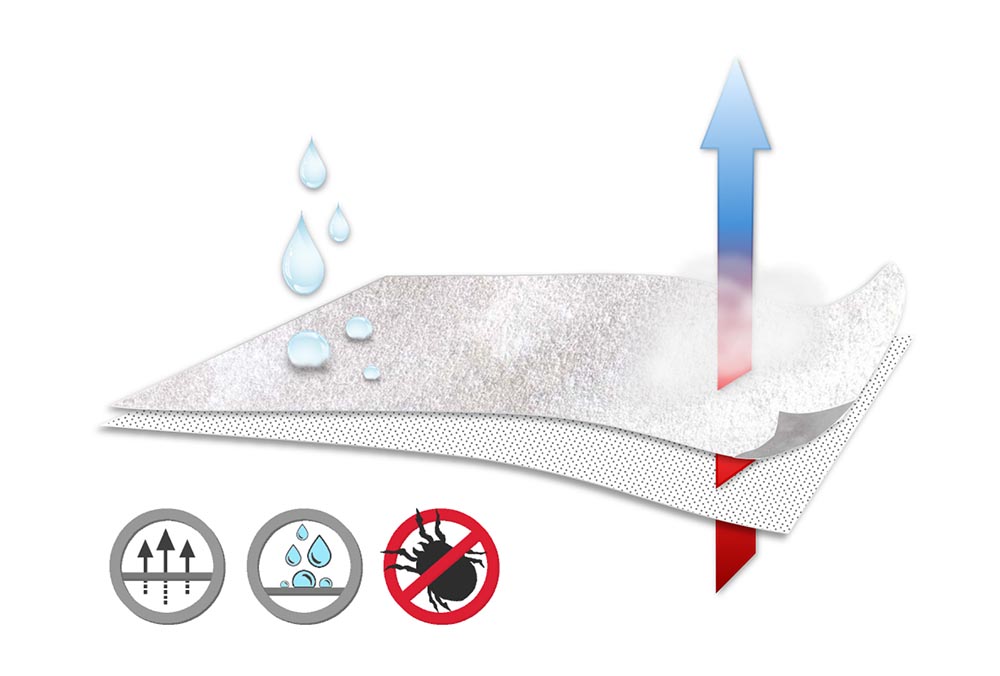 Wyroby ochronne wytwarzane są na bazie membrany poliuretanowej. Membrana nadaje dzianinie właściwości wodoodporne. Pory obecne w membranie nie blokują wymiany ciepła między skórą, a materacem, pozwalając tym samym skórze oddychać. Jest to doskonały wybór dla alergików, ponieważ prześcieradło tworzy barierę dla roztoczy ograniczając ich obecność na powierzchni materaca.